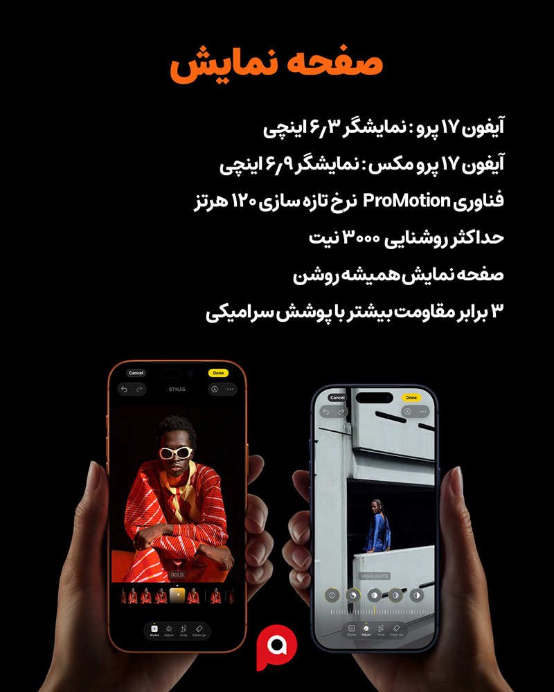 - نمايشگر HDR - نمايشگر Wide Color(P3) - نمايشگر True Tone - Haptic Touch - کنتراست 2,000,000:1 - پاسخ لمسي 120 هرتز - ميزان روشنايي : 1000 نيت در حالت typical و 1600 نيت در حالت HDR و 3000 نیت در فضای بیرون - قابليت دريافت تا 10 لمس همزمان